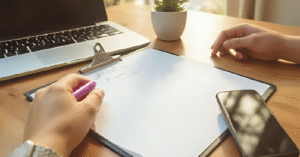 warm morning light, minimalist desk flatlay, one-page Q1 plan on clipboard, woman founder hand with violet highlighter, closed laptop and phone face-down, analog watch at 800, small plant accent, By Christopher Thomas|2025-10-27T01:34:56+00:00October 27th, 2025| Share This Article FacebookXLinkedInWhatsAppTumblrPinterestVkEmail