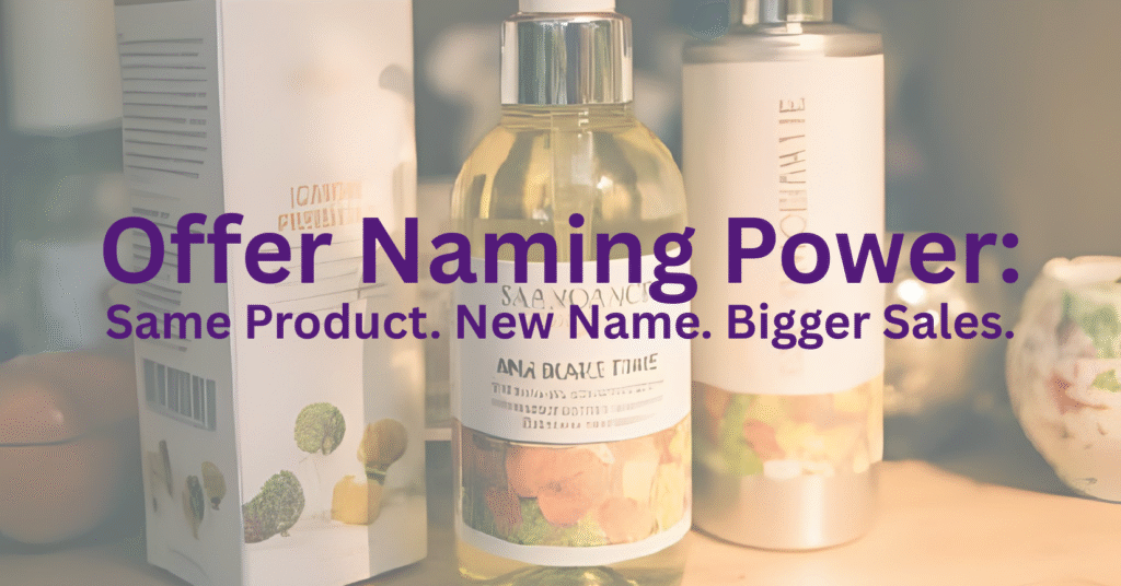 Same product. New name. Wildly different sales. Give your offer the identity it deserves—and let the market feel it.